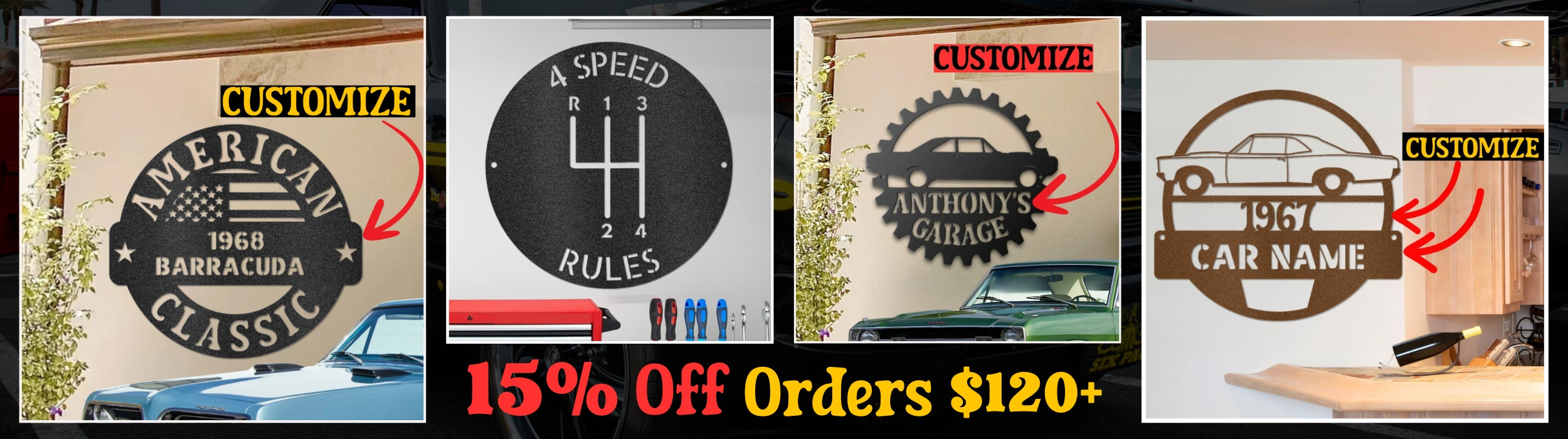 Personalized Classic Car Garage or Man Cave Steel Sign