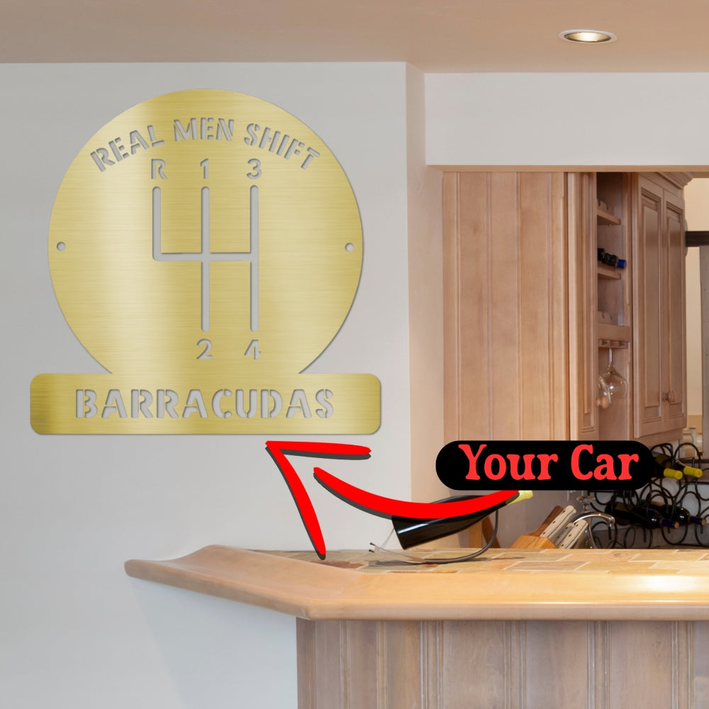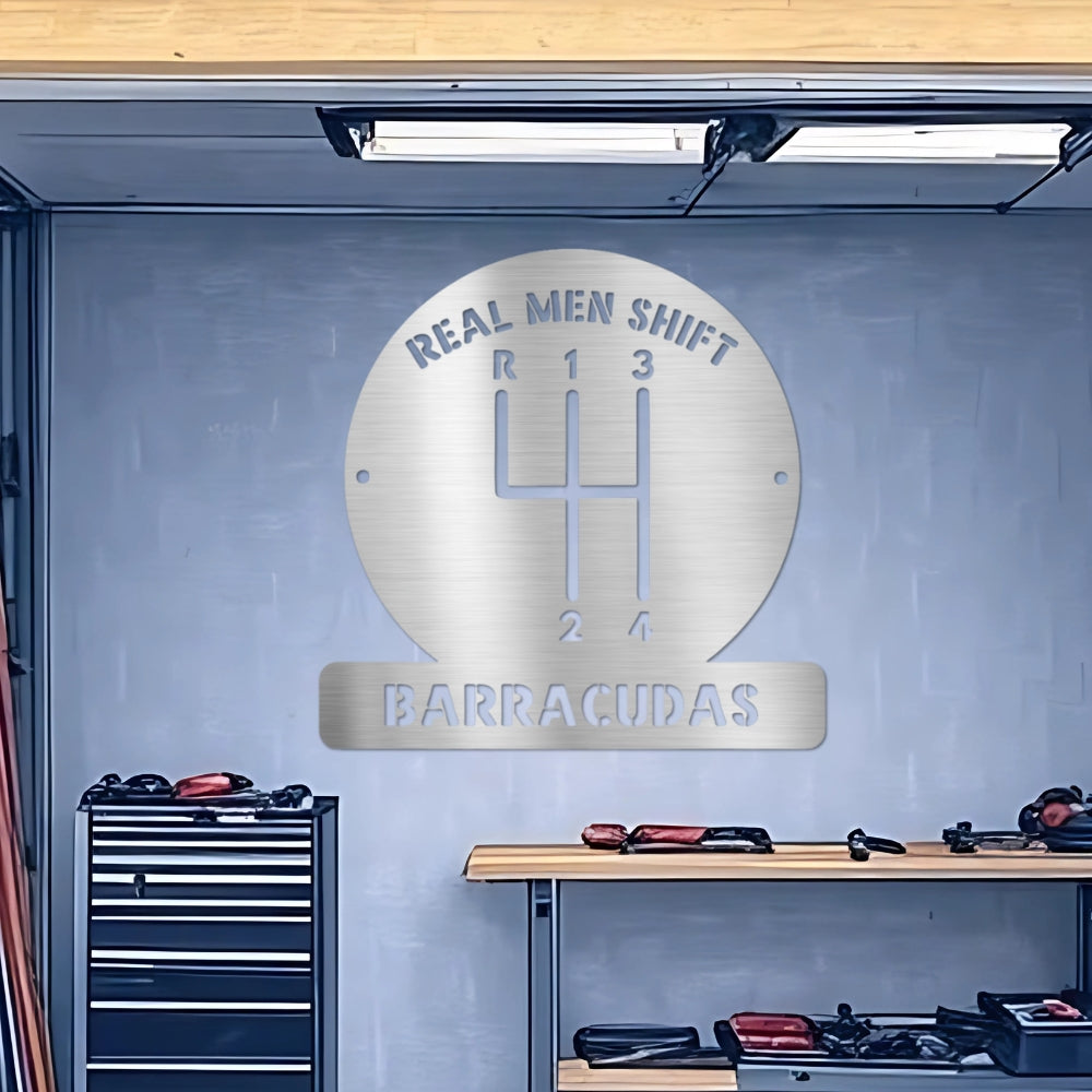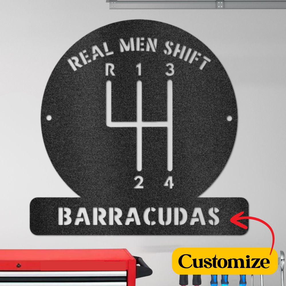 Personalize with your car brand or model! Are you a classic car guy who thinks 4-SPEED cars are way better? Then this sign is for you! The top text says “REAL MEN SHIFT” and the bottom text you choose “YOUR CAR.” Display your garage sign inside or outside of your garage. It's also perfect for your man cave area. Made with 16 gauge steel and powder coated in your choice of 5 colors, this sign is built to withstand the elements for years of enjoyment.