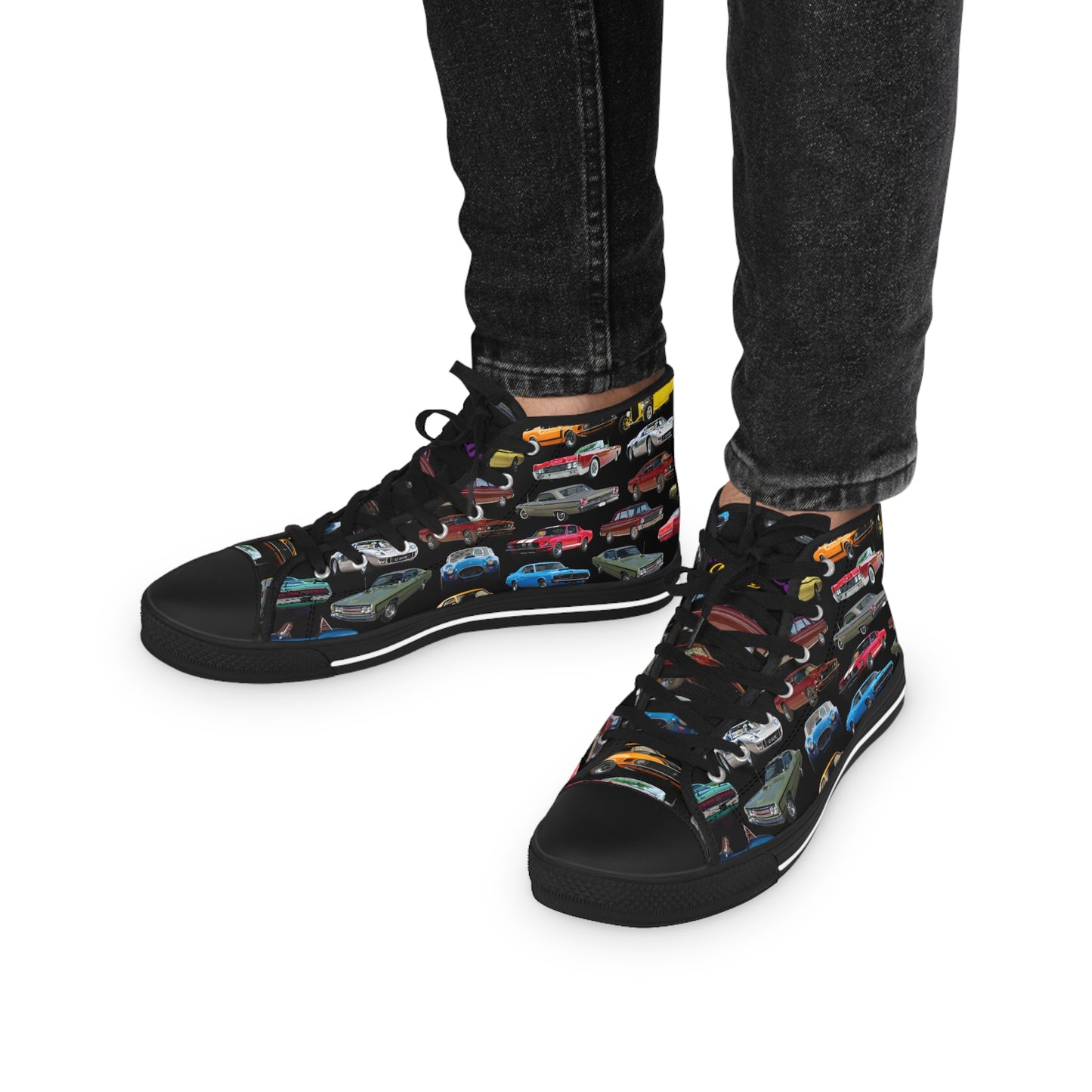 Classic Car Men's High Top Sneakers (One Car Brand) Black Canvas